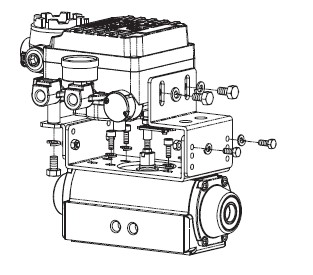 5,用六角螺栓和墊圈固定閥門定位器和支架。固定螺栓時請不要依次完全擰緊螺栓,而要把4個螺栓擰到一定程度后,確認閥門定位器的正確位置后在擰緊4個螺栓。